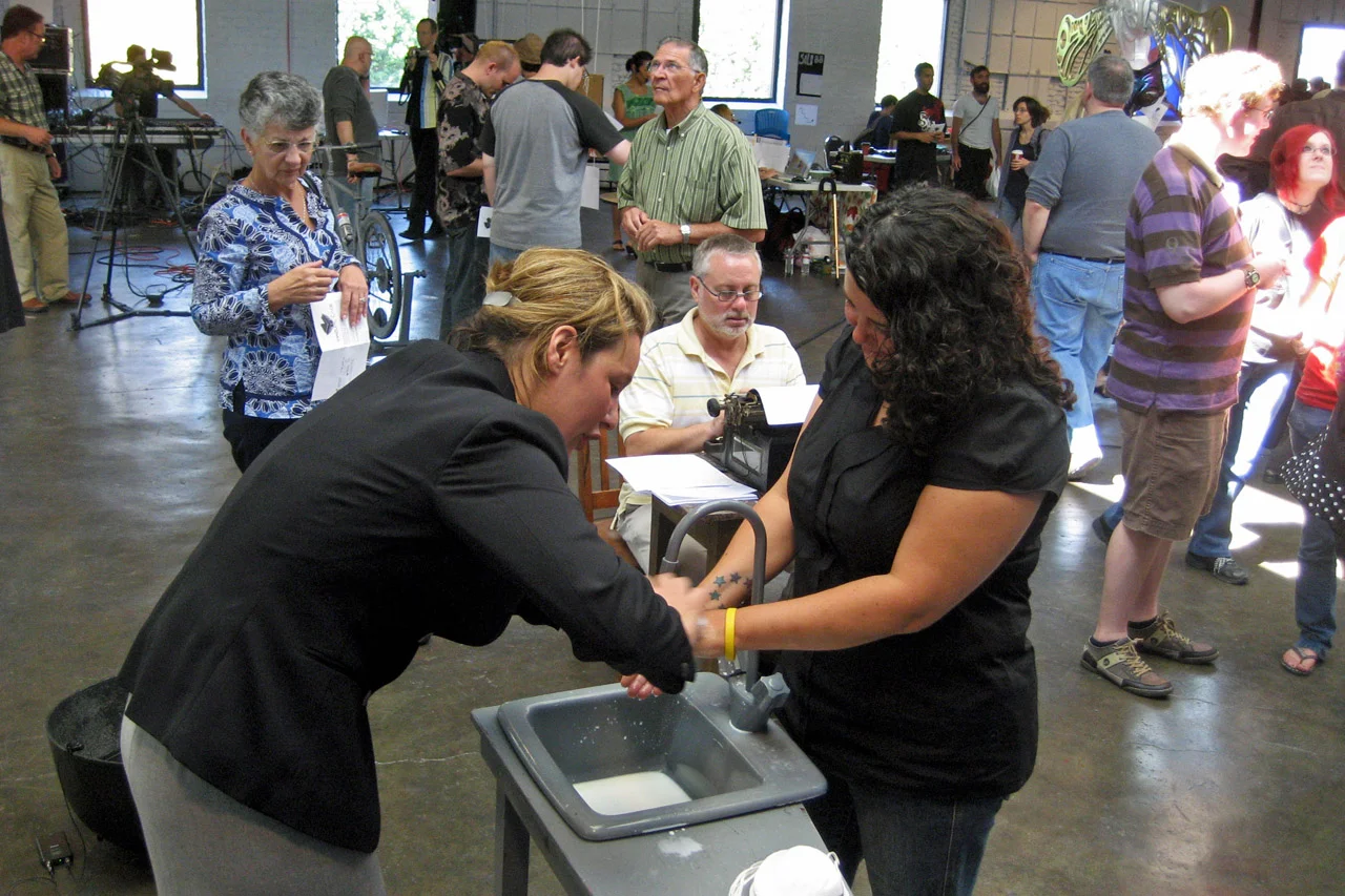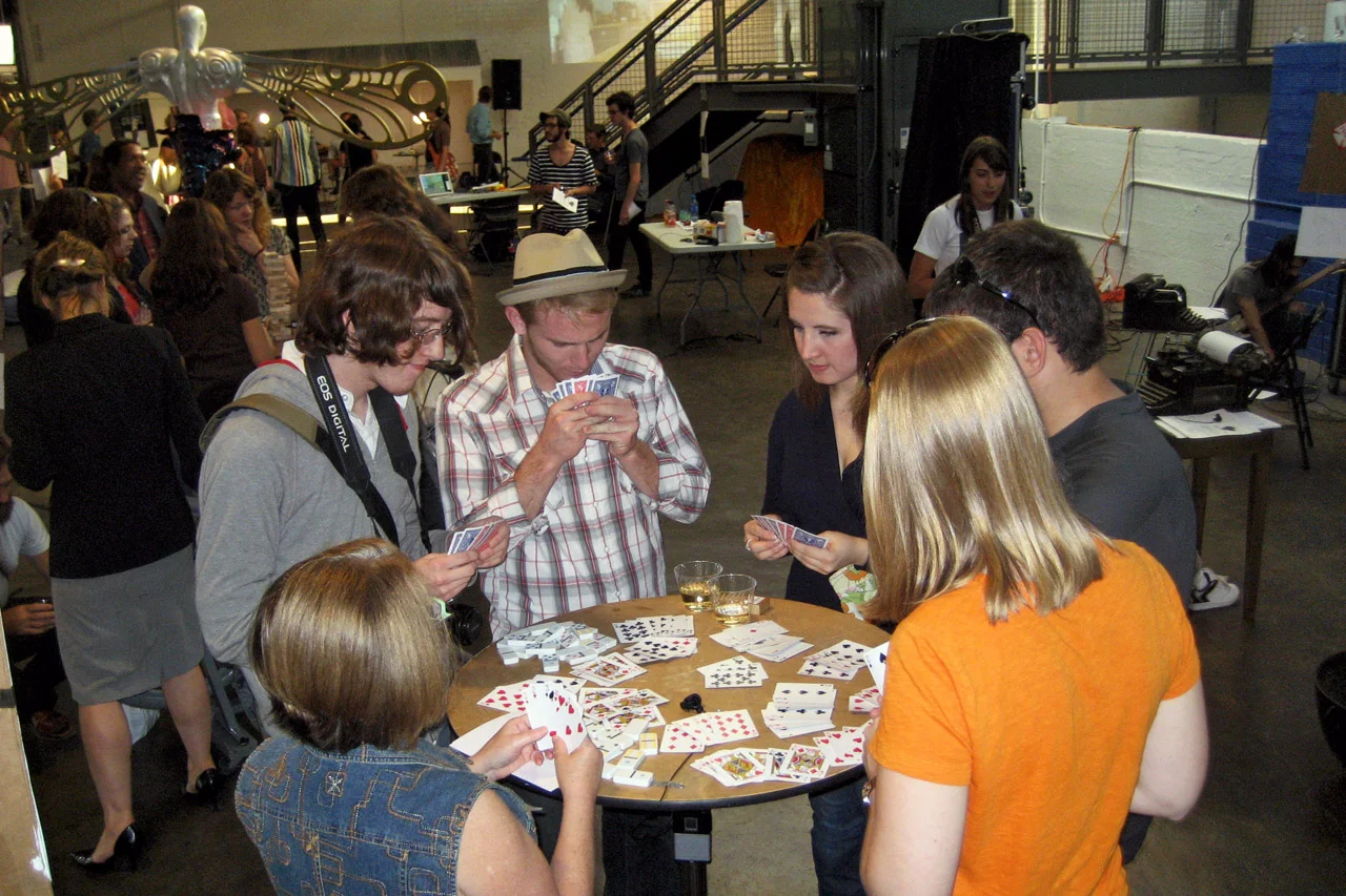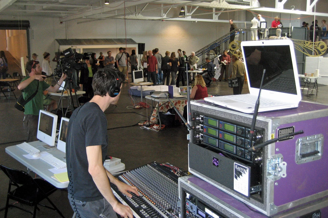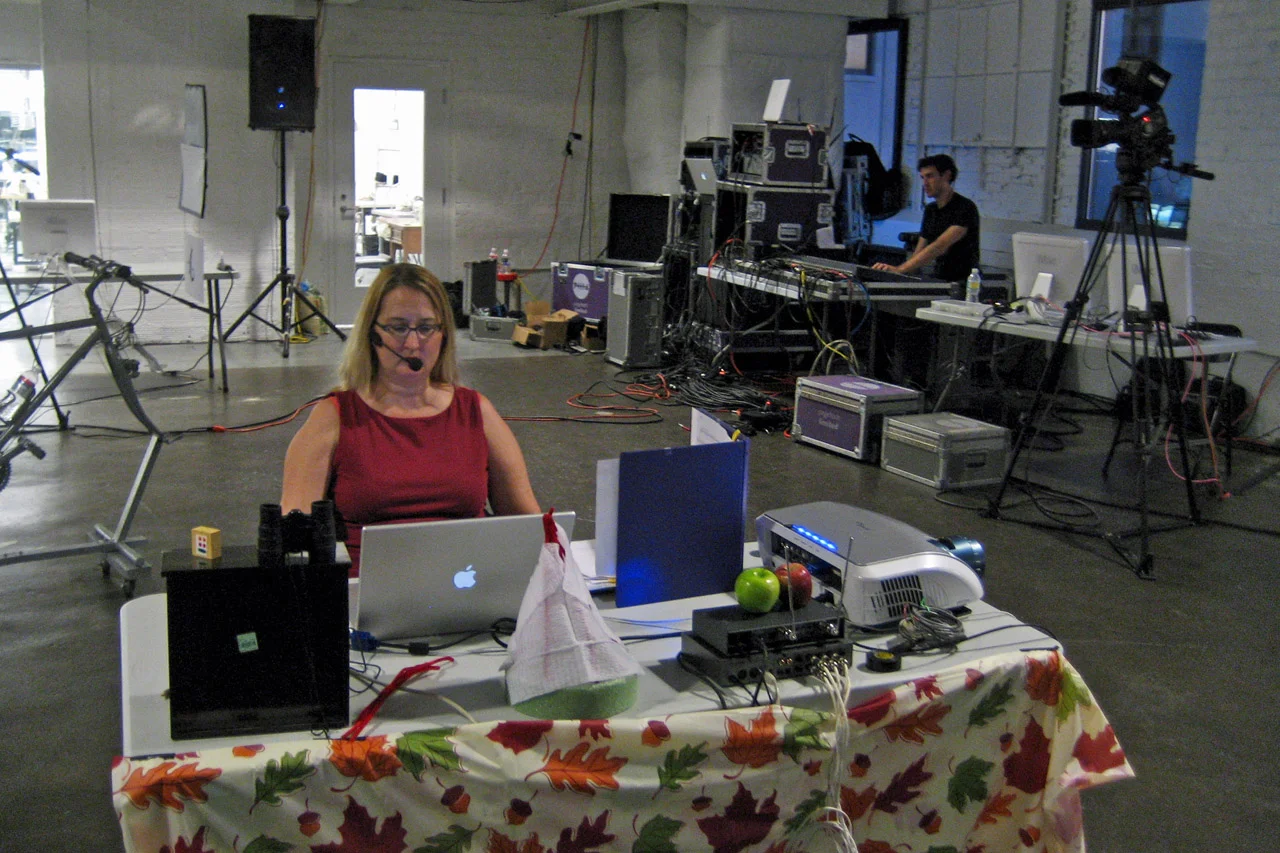 Vir2Ual Cage’s workshops and performances at the Columbus College of Art and Design were inaugural events in the project. Mounting the two performances—Thursday, 17 September 2009, at 12:00–1:30 p.m. and 6:00–10:00 p.m.—involved extraordinary collaboration and logistical support, what with numerous performers, a complex sound system, and live video streaming between Columbus, Ohio and Ghent, Belgium, where a simultaneous performance of Song Books took place at the Orpheus Institute.